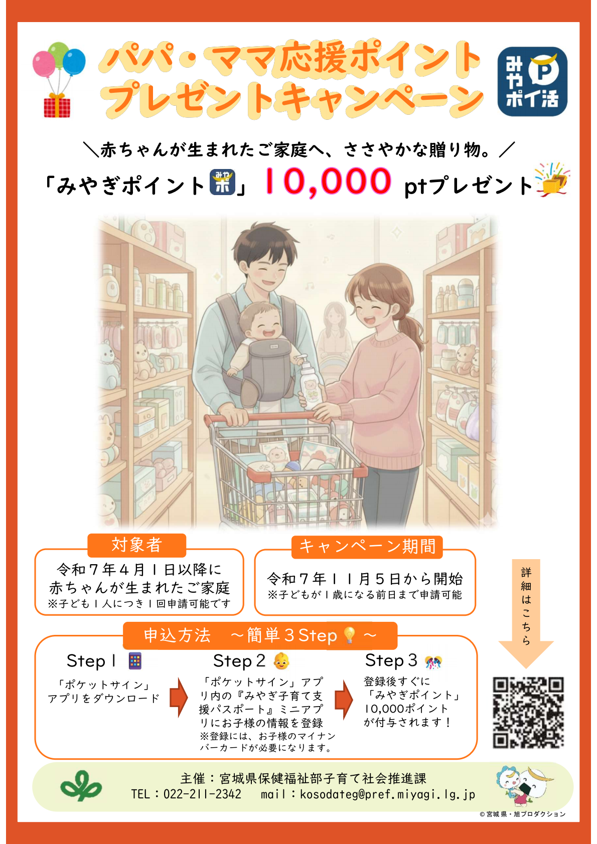 赤ちゃんが生まれたご家庭へ ♪贈り物「みやぎポイント」10000ptプレゼント